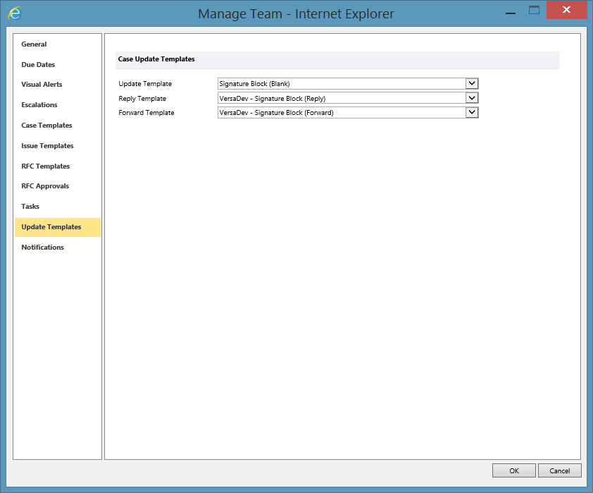 A template can be applied by default when either Updating, Replying or Forwarding from a Case.